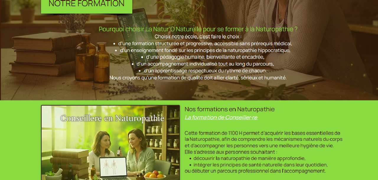 Refonte & Création d'univers narratif / immersif d'une École de naturopathie à distance